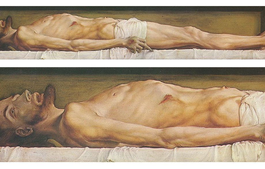The work shows a life-size, grotesque depiction of the stretched and unnaturally thin body of Jesus Christ lying in his tomb. Holbein shows the dead Son of God after he has suffered the fate of an ordinary human.